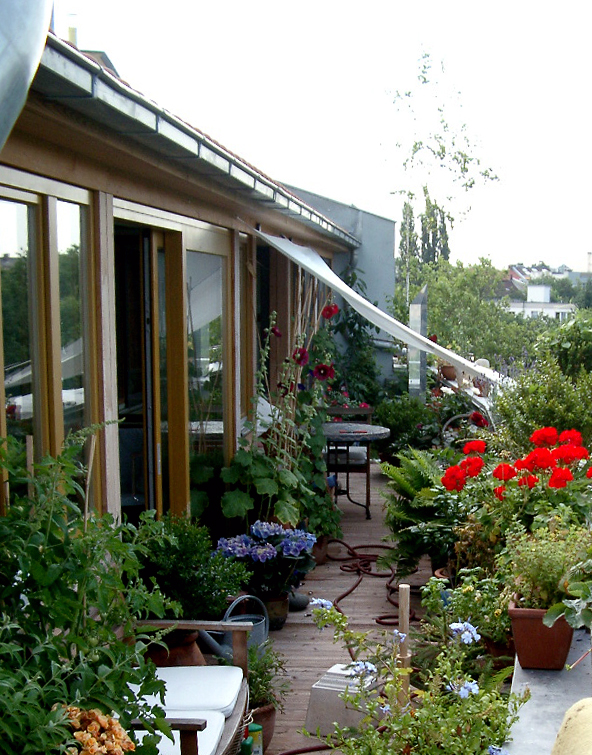 Abbruch alter Dachstuhl, komplett neuer Dachstuhl mit Gauben, großen Terrassen u. Gründach