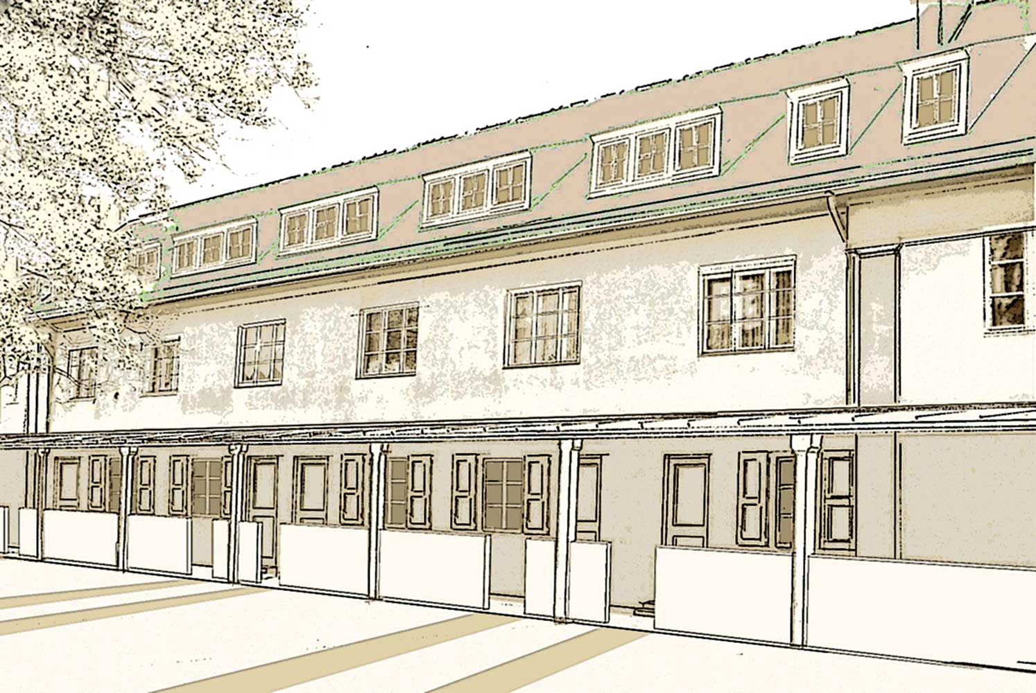 ähnlicher Ansichtsstruktur und Farbkonzept in Abstimmung mit Denkmalschutzbehörde